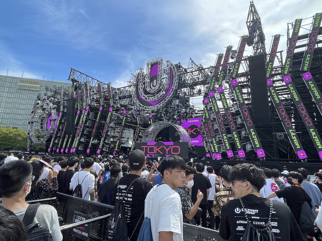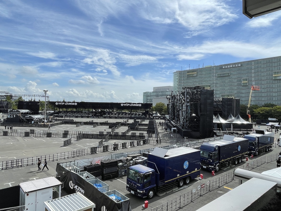 ウルトラジャパンは東京の有明にある専用の大きな野外ライブ会場でやっており、会場内では低音が鳴り響いています!